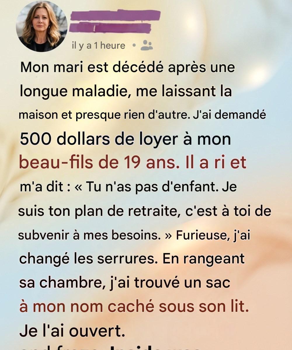 Les pièces étaient identiques, pourtant tout semblait vide, comme si les murs eux-mêmes retenaient leur souffle. Pendant des mois avant son décès, nos journées avaient été rythmées par les couloirs d’hôpital, les résultats d’analyses et un optimisme prudent. Quand tout cela prit fin, le silence qui suivit fut plus lourd encore que la peur qui nous avait accompagnés jusque-là. À la douleur s’ajouta une vague de soucis pratiques : les frais médicaux impayés, les mensualités du prêt immobilier et la dure réalité de devoir tout gérer seule. Mon beau-fils de dix-neuf ans, Léo, vivait encore avec moi. Nous étions tous deux en deuil, mais nous luttions aussi chacun à notre manière, essayant d’imaginer un avenir auquel aucun de nous n’était préparé.