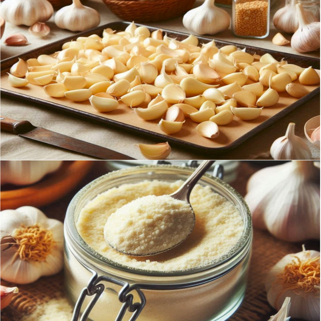 Émincez l’ail : Une fois séché, transférez l’ail dans un mélangeur et mélangez jusqu’à obtenir une poudre fine. Conserver dans un bocal en verre hermétique.